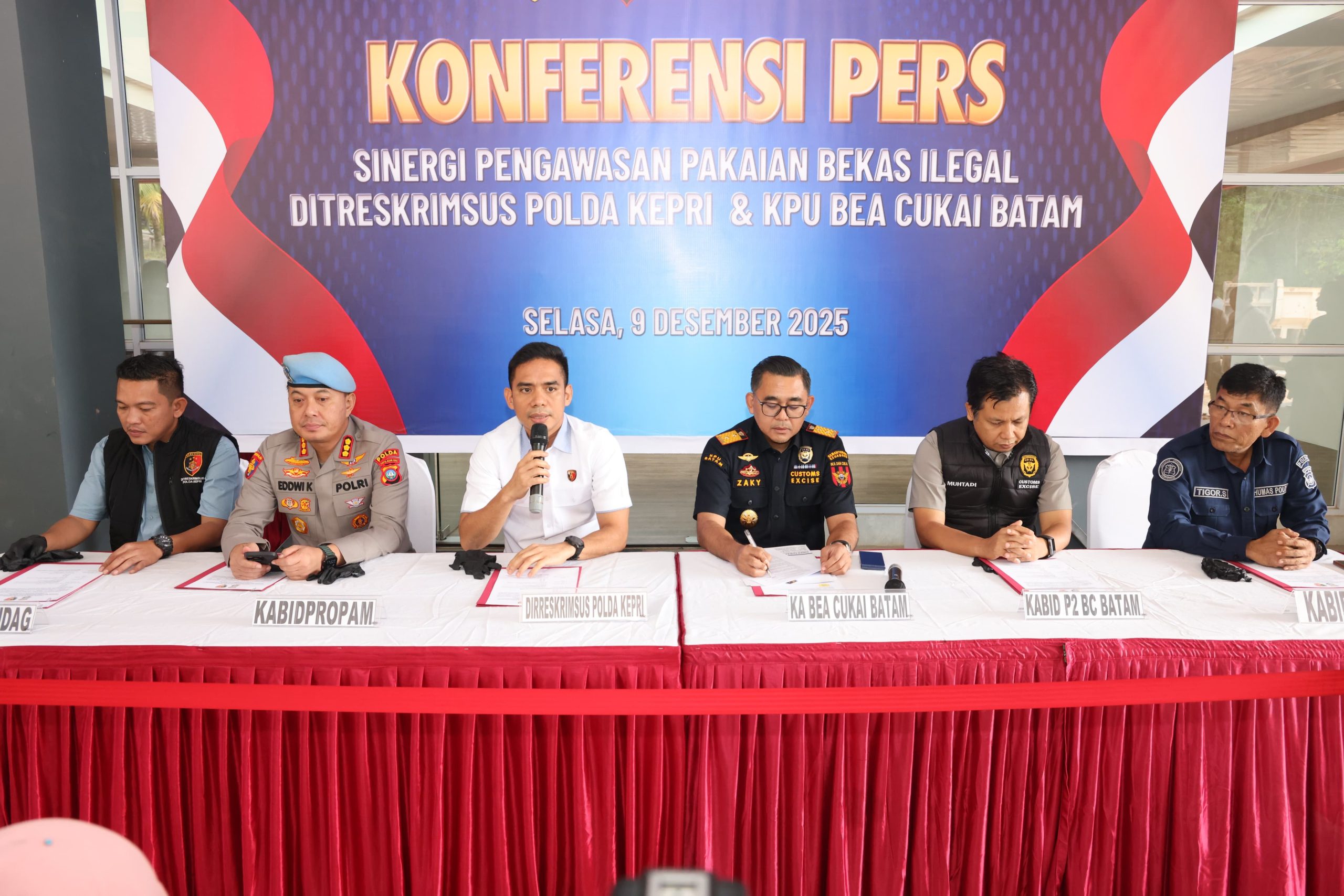 Dalam kesempatan tersebut, Dirreskrimsus Polda Kepri Kombes Pol. Silvester Mangombo Marusaha Simamora, S.I.K., M.H., menjelaskan bahwa Penindakan ini dilakukan di Pelabuhan Internasional Batam Center pada Minggu, 7 Desember 2025 sekitar pukul 13.30 WIB. Berawal dari informasi masyarakat mengenai adanya aktivitas pemasukan pakaian bekas melalui pelabuhan tersebut, Tim Subdit I Indagsi Ditreskrimsus Polda Kepri bersama Tim Bea Cukai Tipe B Batam melakukan penyelidikan dan pemeriksaan terhadap kendaraan roda empat jenis Daihatsu Grand Max warna silver dengan nomor polisi BP 1426 JO. Dalam kendaraan tersebut ditemukan barang bukti berupa 11 koper, 8 ransel, dan 20 karung sisa hasil penjualan, yang seluruhnya berisi pakaian dalam keadaan bekas. Barang-barang tersebut diketahui akan diperjualbelikan kembali untuk memperoleh keuntungan.