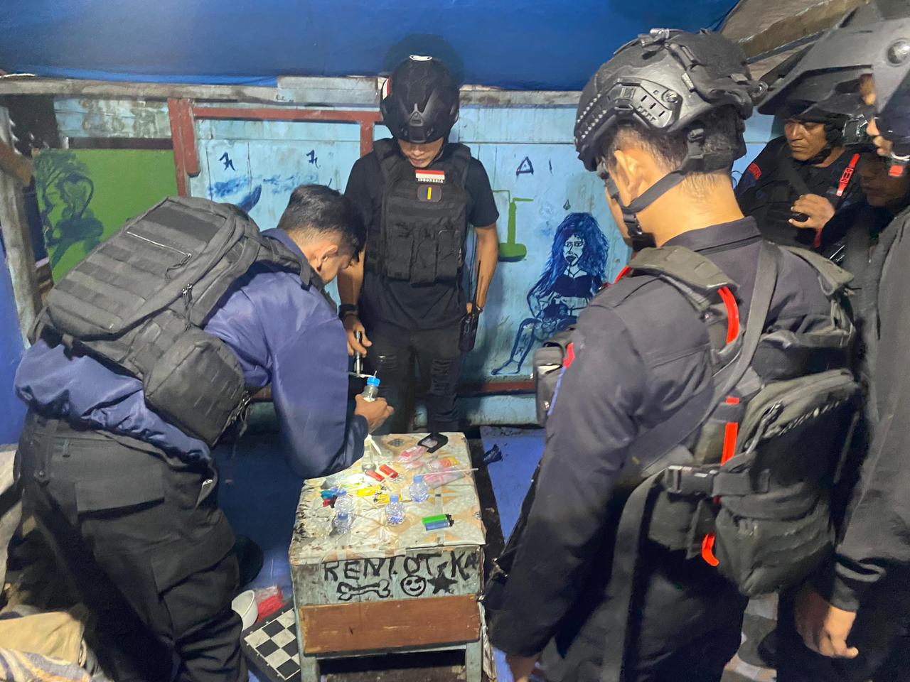 Operasi tersebut menyasar kawasan rawan kejahatan, khususnya Lorong Kenangan dan Lorong Melati yang kerap menjadi titik rawan tindak kriminal. Saat penyisiran, petugas menemukan sebuah rumah yang dijadikan barak narkoba sekaligus tempat persembunyian sejumlah pelaku kejahatan. Dari lokasi itu, tim berhasil mengamankan lima orang yang diduga kuat terlibat dalam aksi penjarahan di Lorong Melati beberapa waktu terakhir.