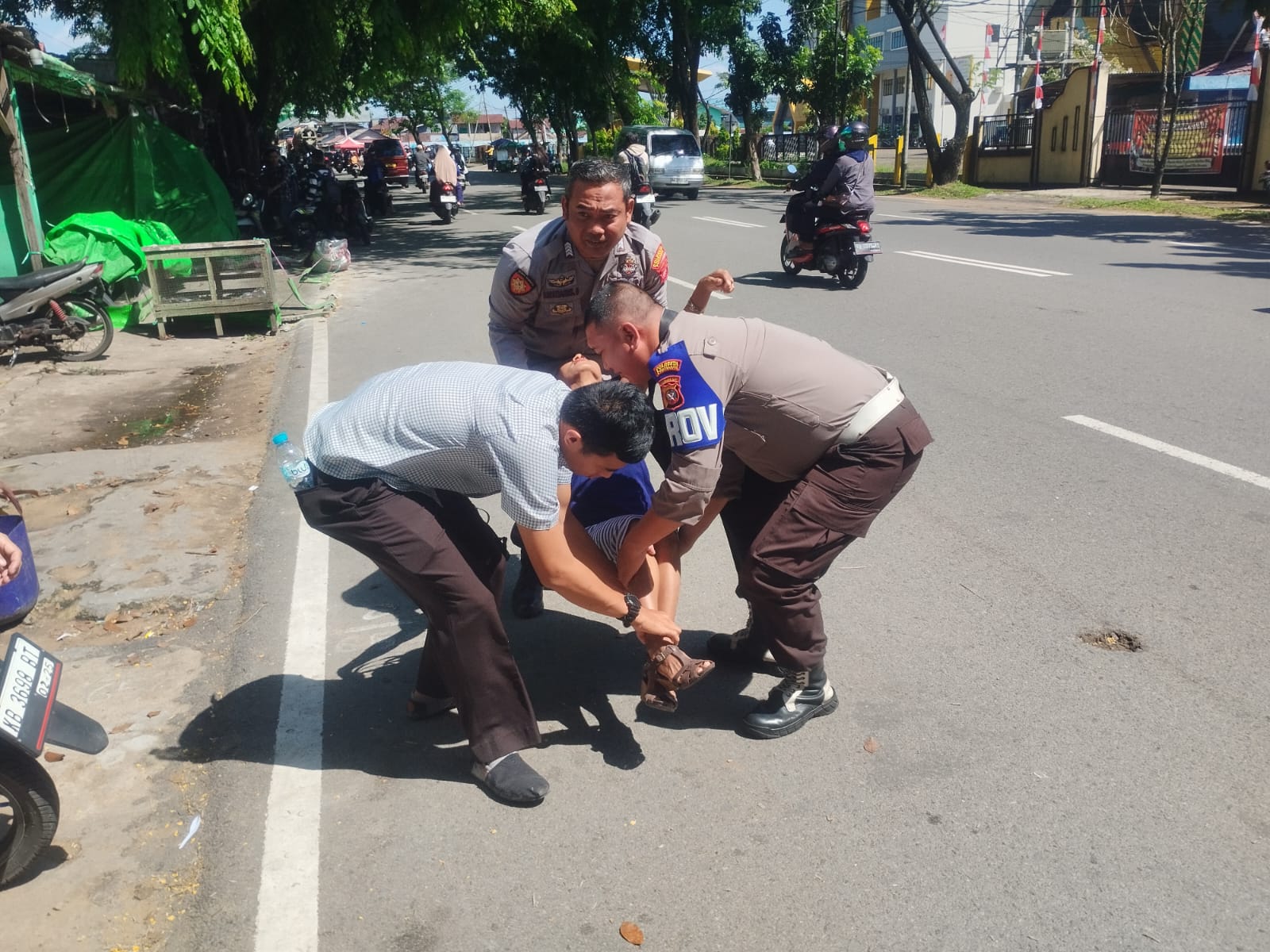 Personil Polsek Pontianak Barat Sigap Tolong Warga Pingsan di Pinggir Jalan