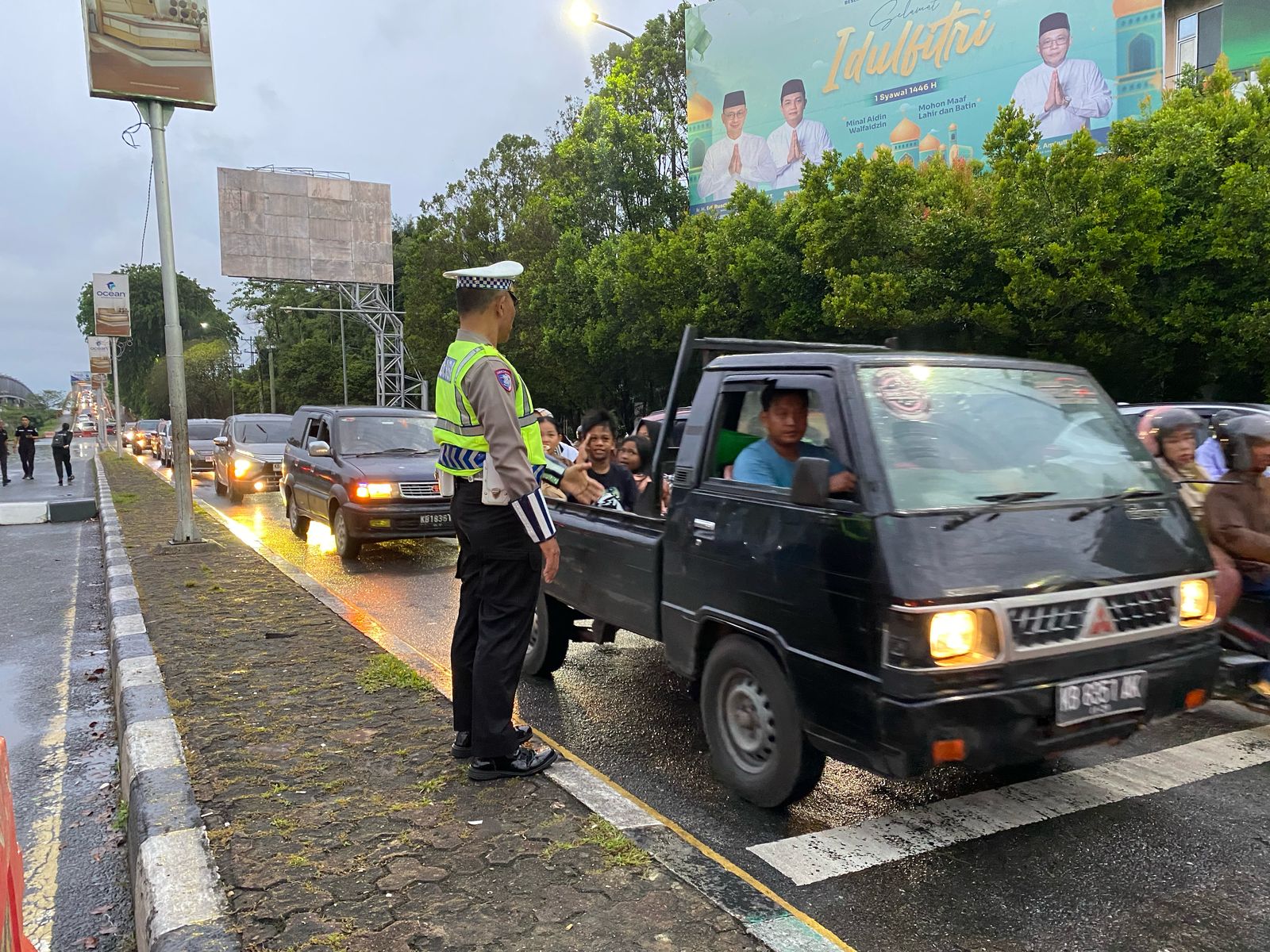 “Selama terjadinya arus balik Mudik ini, mulai pukul 13.00 sudah mulai terlihat kepadatan arus lalu-lintas, sehingga terjadinya antrian panjang di lampu merah hingga mencapai ke Jl.Tanjung Raya.”