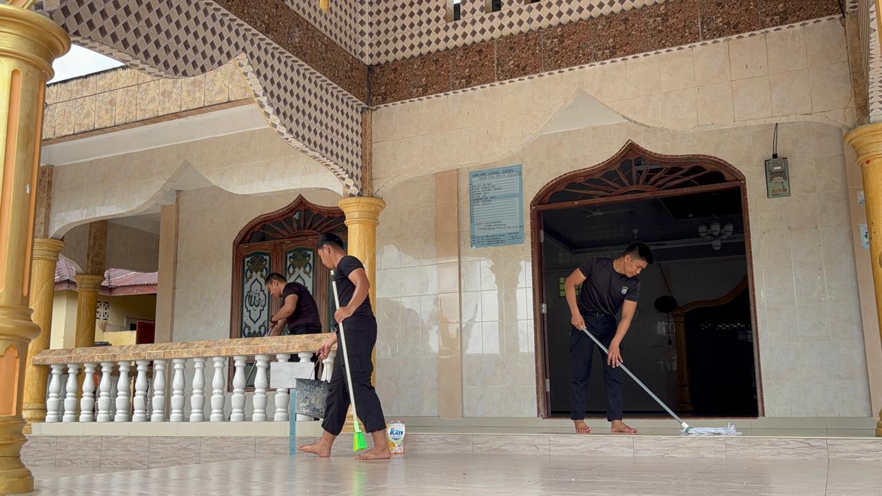 Kegiatan dipimpin langsung oleh Komandan Kompi 4 Batalyon C Satuan Brimob Polda Sumut, AKP Sanro Situngkir, dan diikuti oleh seluruh personel Kompi 4 dengan penuh semangat gotong royong. Dalam suasana penuh kekeluargaan, para personel bahu-membahu membersihkan area masjid, mulai dari halaman, tempat wudhu, hingga bagian dalam ruang ibadah, sebagai wujud kepedulian dan rasa hormat terhadap rumah ibadah umat muslim.