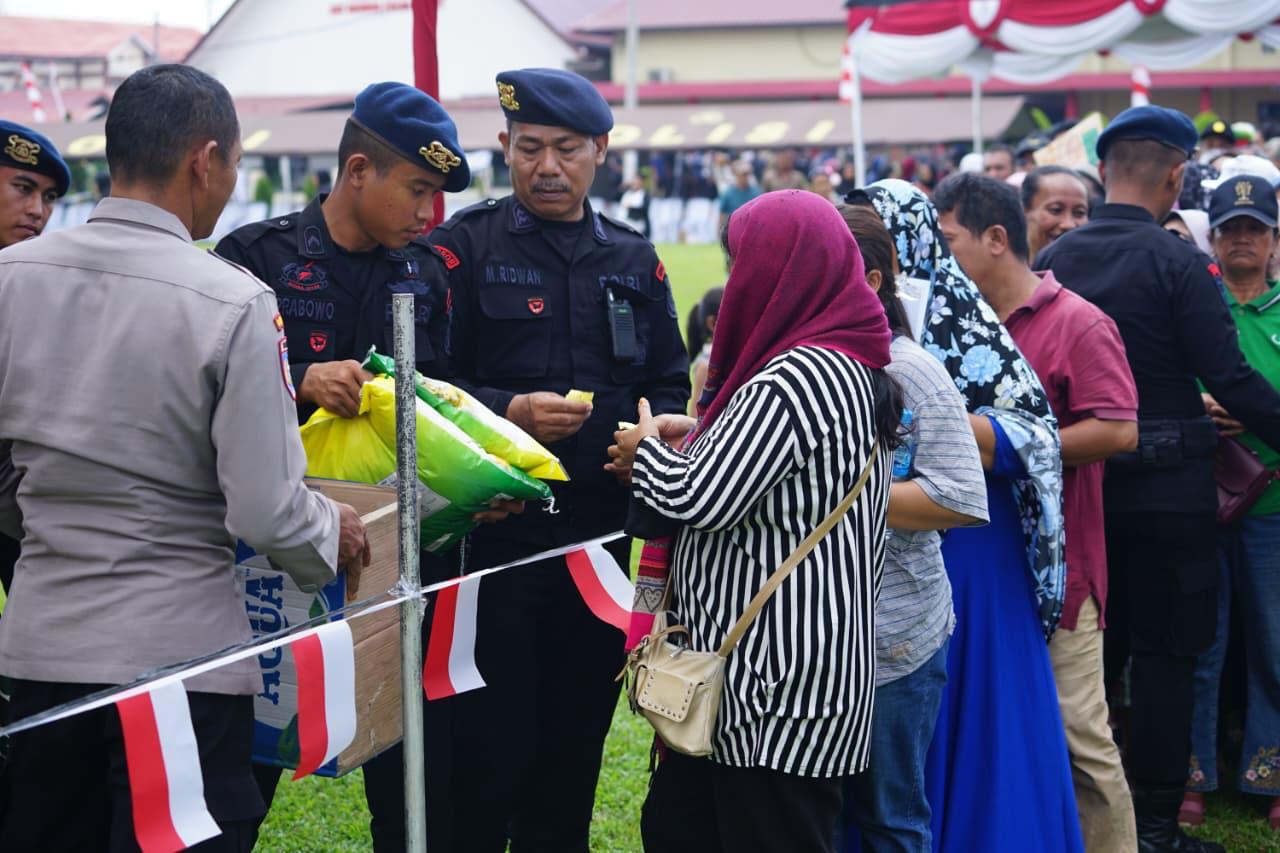 Dalam kesempatan tersebut, Satuan Brimob Polda Sumut menyalurkan sebanyak 4.000 sak beras kepada masyarakat dengan harga terjangkau. Selain itu, warga yang hadir juga dihibur dengan penampilan personel Brimob serta pembagian makanan ringan dari pelaku Usaha Mikro, Kecil, dan Menengah (UMKM) lokal, yang turut meramaikan suasana kebersamaan.