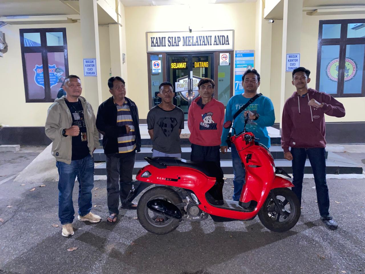 Dari tangan pelaku, petugas turut mengamankan barang bukti berupa satu unit sepeda motor Honda Scoopy KB 6858 XT warna merah yang diduga digunakan dalam melancarkan aksi kejahatan.