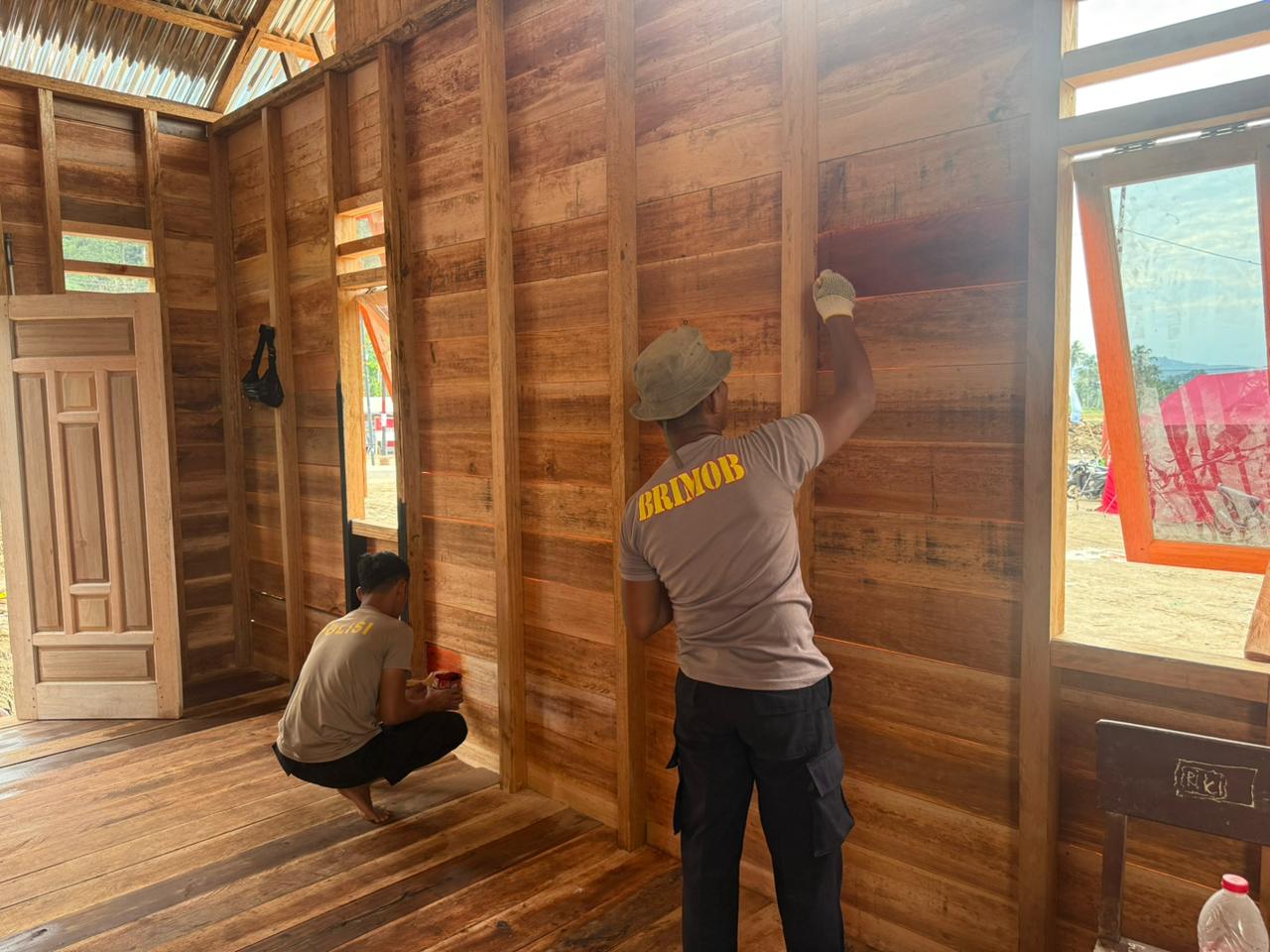 Di Desa Garoga, personel Brimob juga melanjutkan pengecatan rumah hunian sementara sebagai bagian dari upaya menciptakan lingkungan yang lebih layak dan nyaman bagi warga terdampak. Hingga saat ini, progres pengecatan huntara telah mencapai 65 persen dan akan terus diselesaikan secara bertahap.